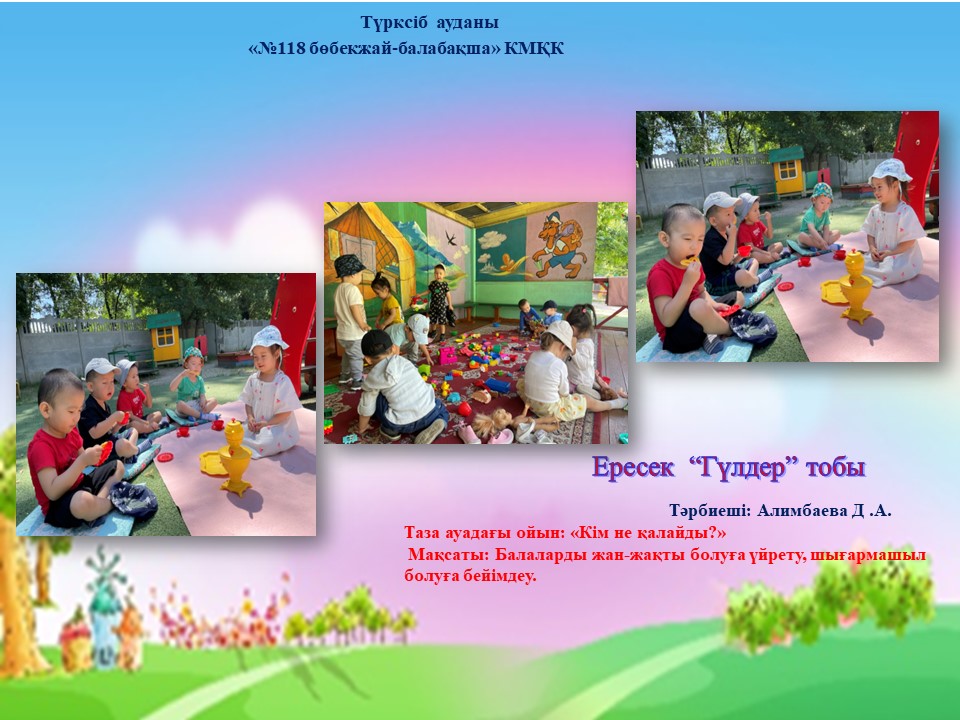 11 шілде 2025 0 1 2 3 4 5 " Таза аудағы серуен" "Бисер мен жұмыс " "Шарлар әлемі" "Кім не қалайды ойыны"Ересек "Гүлдер"тобы