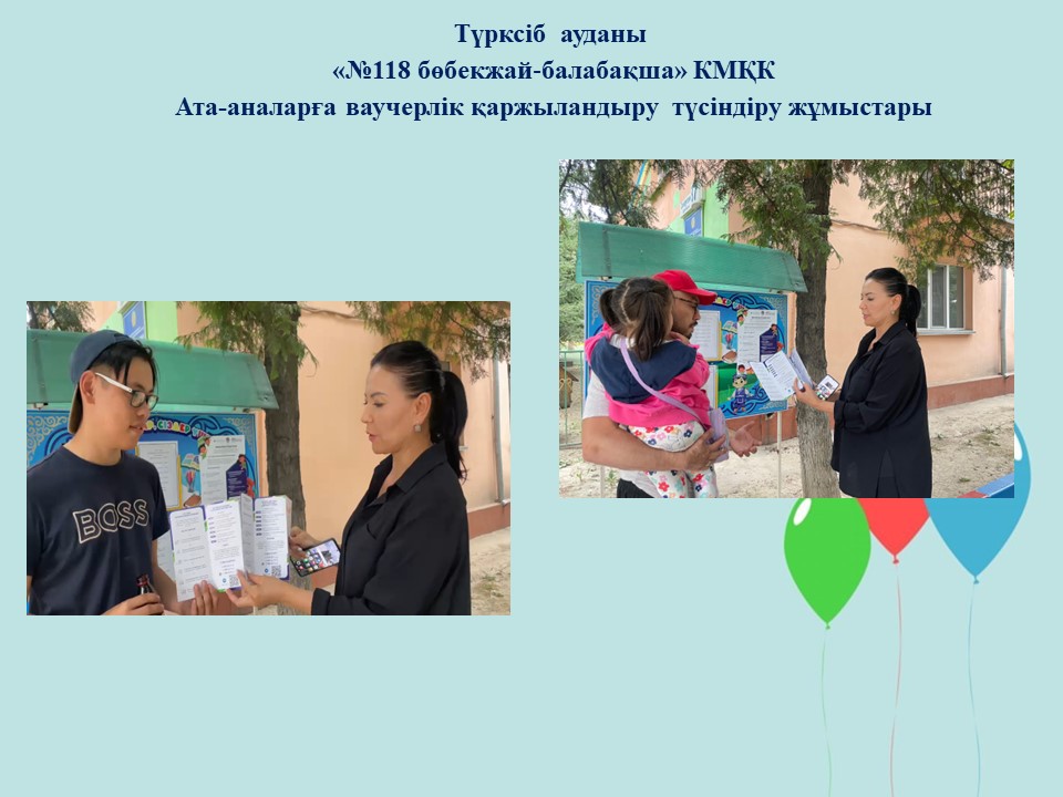 Ата-аналарға түсіндіру жұмыстары Ваучерлік қаржыландыру » ГККП "Ясли сад №118"
