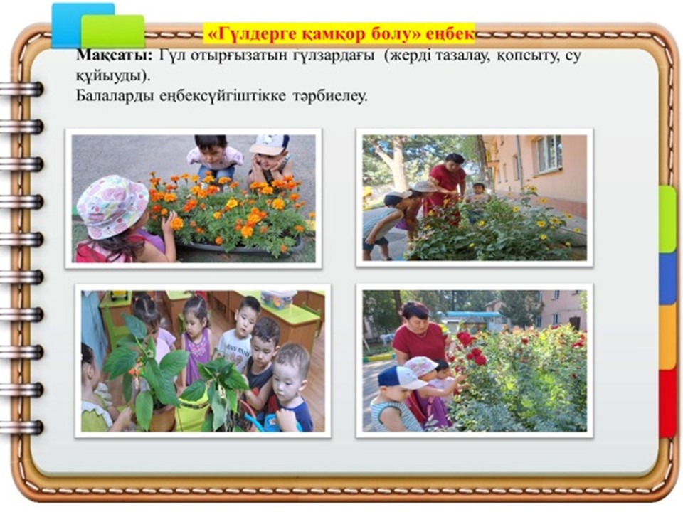 Таза ауадағы еңбек "Гүлдерге қамқор болу" ортаңғы "Қарлығаш" тобы » ГККП "Ясли сад №118"