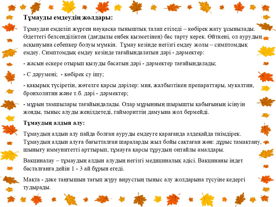 КЕҢЕС ""Тұмау және оның алдын алу жолдары